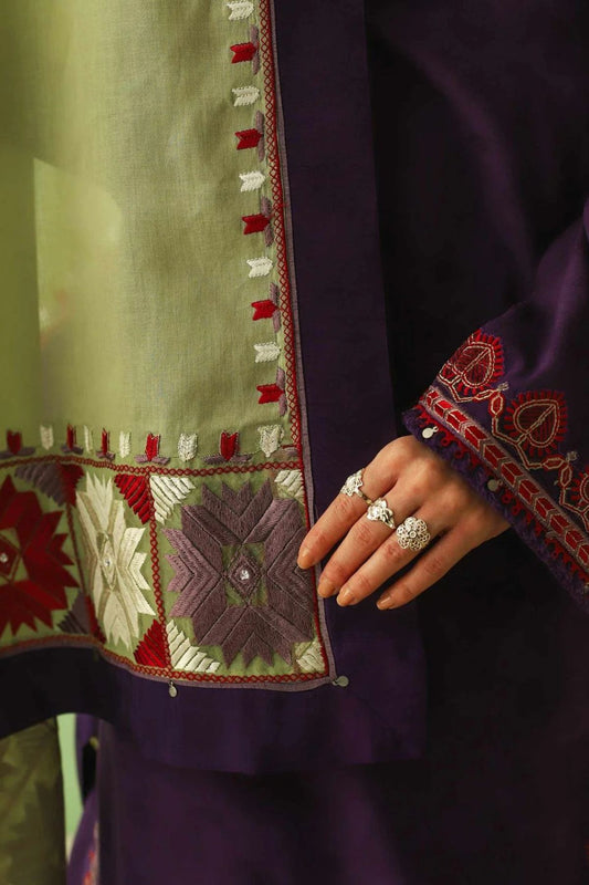 Saira Rizwan 001 Unstitched Luxury Dhanak Chikankari Heavy Embroidered 3PC Suit